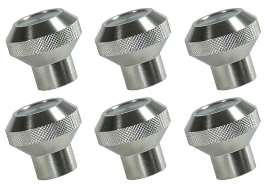 Dress up your interior and add a custom touch with these billet knobs. Billet aluminum knobs constructed of steel and are coated with a clear coated finish or with a black powder-coated finish. Sold as a set of 6 knobs.