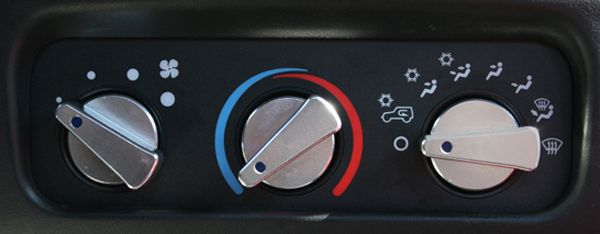 Upgrade your Jeep Wrangler TJ with the Billet Aluminum Climate Control Knob. These stylish knobs are easily installed by pulling off the factory knobs and pushing these back in their place. The blue colored inserts in the face of the knobs light up at night to show their position. Sold as a set of three.