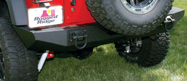 Make the most of your rear bumper with our XHD Textured Black Rear Bumper. Features easy installation, amazing looks and two reinforced heavy duty D-Ring attachment points. Special "inner mounting plate" provides an extremely secure mounting point - strong enough for offroad use! The two-piece design allows use with and without tire carrier options. Heavy duty powdercoated steel design looks great but is extremely tough. Mount on the optional Tire Carrier and you can hold up to a 35" tire.