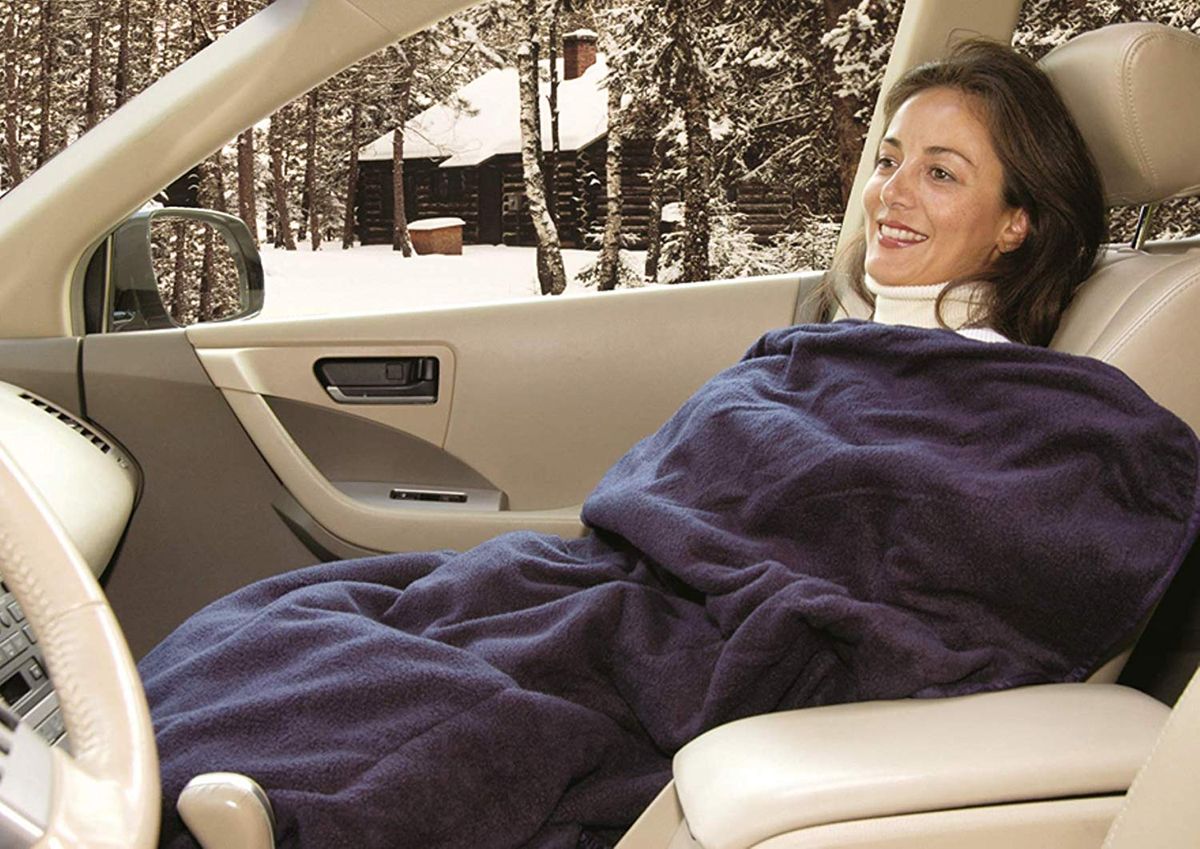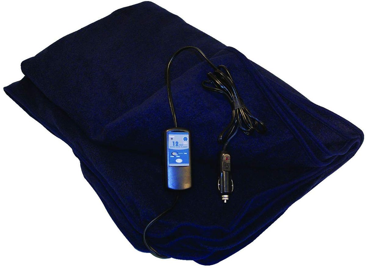 12 Volt Navy Blue Heated Fleece Travel Blanket |
