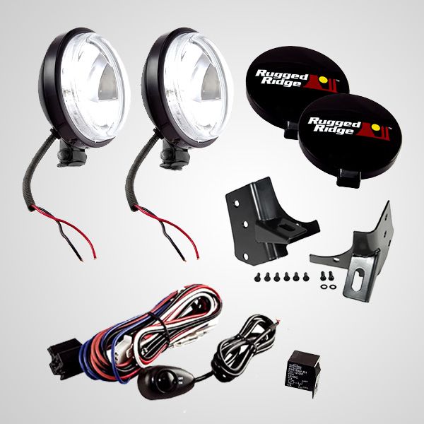 The Jeep Wrangler TJ 5 Piece Black Slim Fog Lights Windshield Light Mount Kit Includes: