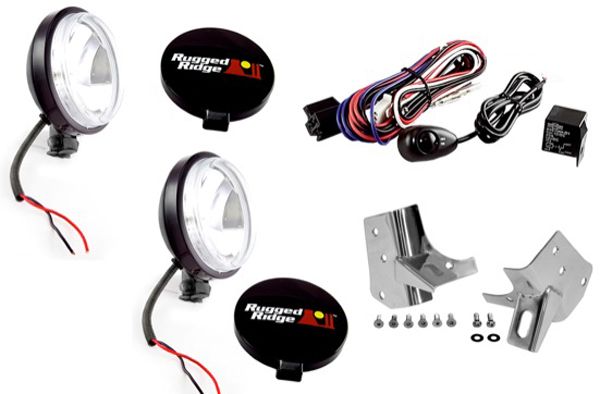 Jeep Wrangler TJ 5 PC Slim Fog Lights w/SS Windshield Light Mounts Kit |