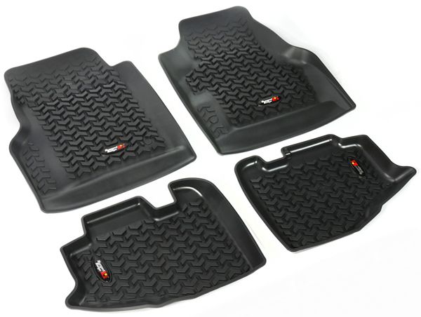 The only floor liner with patent pending Deep Tread technology! These floor liners are a totally new concept that combines all the best features of precision engineering using state of the art a deep ribbed floor mat and the old style liners. Precision engineering using state of the art technology ensures an exact fit to the shape and contour of your vehicle’s floor. The deeply molded Chevron-shape tread pattern channels dirt, mud and snow away from the driver to keep shoes and pant legs clean, containing the movement and sloshing around of any trapped water. The high perimeter wall offers a large footprint and maximum interior protection and containment. Constructed of all weather injected-molded durable OE-quality Thermo- plastic Elastomer (TPE). Raised nibs on the bottom provides maximum retention and keeps the liner in place. The self-sealing floor hook attachment feature (where applicable) helps to prevent dirt and moisture from getting through. Easy to remove and clean. Simply hose them off and go. The mat actually reseals itself around the hook! Includes front and rear floor liners.