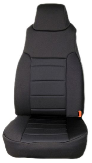 The custom fit Neoprene Seat Covers are constructed of durable neoprene creating the best looking custom seat cover available. Neoprene (wet suit material) is a great fabric to protect your seats from dirt, water and whatever mother nature can throw at you. No more burned legs from hot vinyl seats! Each cover is custom tailored for your Jeep's original equipment seat style making your seats look like they have been recently reupholstered. Installation is easy with special designed elastic cords, nylon straps and hooks that attach to your seat and to the seat cover mounting points.