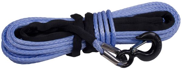 Stronger and lighter, the two key elements of Synthetic Rope that make it the choice competition off road vehicles everywhere. Rugged Ridge high strength Synthetic Winch Rope is constructed from genuine Dyneema SK-75 fiber imported from the Netherlands. This revolutionary fiber is the choice of off-road enthusiast worldwide. It is stronger and lighter than wire rope and never kinks or splinters! Our synthetic line is woven from twelve UV-treated strands, resulting in increased strength, and a power to weight ratio unmatched by wire rope. Each synthetic rope comes with a protective sleeve that prevents it from over heating on the winch drum, black powder coated latched hook, stainless steel thimble, and is pre-terminated end for ease of installation. Synthetic rope dos not store energy like steel cables, and in the event of a failure it is much less likely result severe injuries caused by the whiplash of broken wire rope. Each replacement rope kit can be easily attached to your current winch by removing your current steel cable and roller fairlead.
