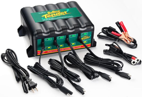 Bank Battery Tender Charging Station is four encased 1.25 amp battery chargers