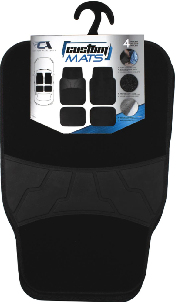 4 Piece Black Carpet with Rubber Heel Pad Floor Mat |