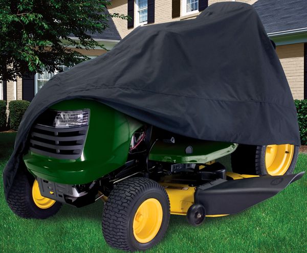 The Deluxe Tractor Mower Cover provides heavy-duty protection for your tractor mower against sun and UV damage, bad weather, dirt, birds and tree sap. The outside fabric is coated for maximum water resistance and repellency and the interior lining protects your tractor mower from scratches. Contains dual vents that let air circulate and help prevent ballooning in winds and an Integrated muffler heat shield. Comes with an EasyOn™ split back for fast fitting and easy access after installation. An elastic shock cord in the bottom hem provides for a quick, custom fit. Comes with a handy storage bag for easy storage.