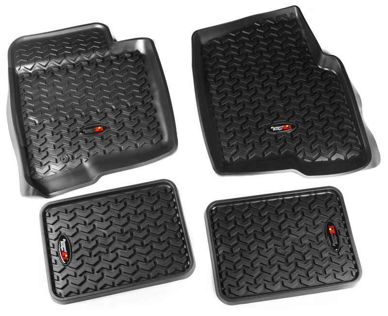 This is not your typical floor liner! Existing floor liners in the market today are constructed of extruded plastic materials vacuum formed to fit the vehicle. Rugged Ridge has taken a completely different approach to floor protection. Each All Terrain Floor Liner is injection molded for superior fit and quality. The injection molded process, though more expensive to develop, allows us to create a floor liner that has exacting measurements or better fit and finish along with a deeply formed perimeter wall for maximum coverage. Each All Terrain Floor Liner has chevrons that are up to 3/8” deep. That is up to 3 times the depth of other floor liners! The chevrons keep water from sloshing and help divert mud water and snow away from the driver's pant leg. We call this true “Deep Tread Technology”!