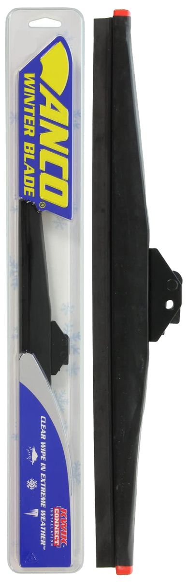 The Anco winter blades provide a super-strong, rugged rubber cover over a heavy-duty frame to prevent ice, snow and slush from freezing wiper joints or building up on the blade itself. A heavy-gauge steel bridge resists abuse, and its extra-thick DuraKlear™ natural rubber wiping edge remains flexible in the coldest temperatures. Our winter blades outperform all competitors in laboratory testing and are available in eight lengths. Once the winter weather is over for the year, the blades’ KwikConnect™ System allows for easy installation and removal, so return to normal blades is quick and effortless. Blades come one per package.