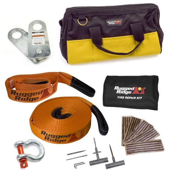 The Rugged Ridge ATV/UTV Standard Recovery Gear Kit includes the most popular recovery items to make sure you can get out of those trouble spots quickly and safely.