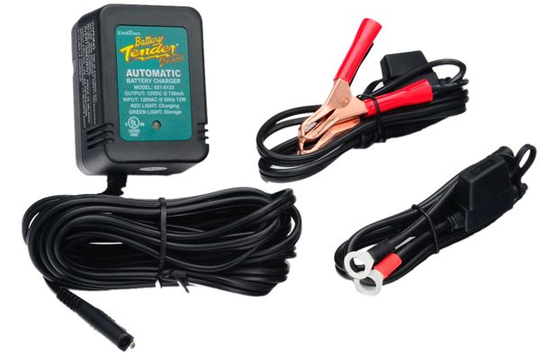 The Battery Tender Junior is much more than a trickle charger. It has a brain. It's lightweight, compact, and fully automatic; very easy to use, especially in small spaces. It will keep your battery fully charged so that it is ready to go when you are! The Battery Tender® Junior charger plugs directly into a DC or AC outlet. Comes with both ring terminals and alligator clips.