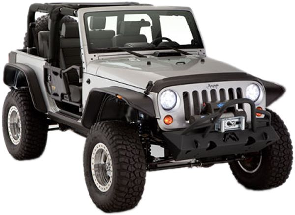 The Flat Style Fender Flares gives your Jeep Wrangler JK a dose of trail-ready style. Crafted from a super-tough plastic designed for maximum durability and flexibility, Flat Style Flares bend with the trail and pop right back into shape without breaking. Fully molded design covers exposed wheel well sheet metal and works with factory inner splash guard to protect engine components. Constructed of extreme Dura-Flex® 2000 TPO material that bends instead of breaks, then goes back to its shape. Plus, the OEM textured matte-black finish looks great out of the box or with your custom paint. The front flairs include DOT-compliant LED marker lights molded into the edge. The Bushwacker Flat Flares bolt right to existing factory holes of your Jeep Wrangler JK. Comes as a set of 4.