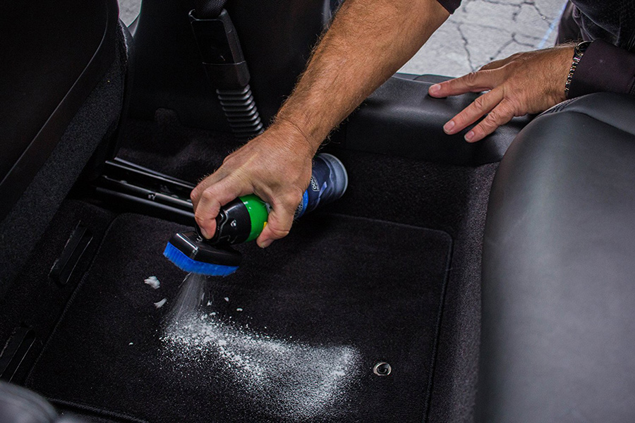 - Rub foam into carpet with bristle cap