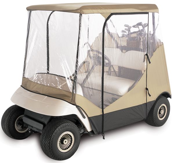 This game is hard enough without worrying about the weather. The 4-Sided Travel Golf Car Enclosure provides protection against wind and rain for two-person golf cars, with or without windshields. Each side of the enclosure has an ultra-clear vinyl window. Zippered doors open to the side for easy entry and there is a separate rear panel that zips open for easy access to your clubs. Comes with a carrying case for easy storage. The golf car enclosure make driving the favorite part of your game.