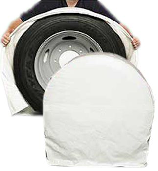 Tires take a lot of abuse and can become unsafe if left exposed to the UV rays from the sun and other environmental hazards too long. Heavy duty, flannel-backed vinyl protects your tires and wheels from harmful UV rays, dirt and dust, acid rain, animals and pets. TireSavers make protecting your tires a "snap". Our exclusive spring-steel ring design holds the TireSavers in place and eliminates the hassle of crawling around on the ground to secure straps, bungee cords and/or other hardware. Just spread the TireSaver, slide it over the tire, and let the still ring "snap" into place...it's that easy!