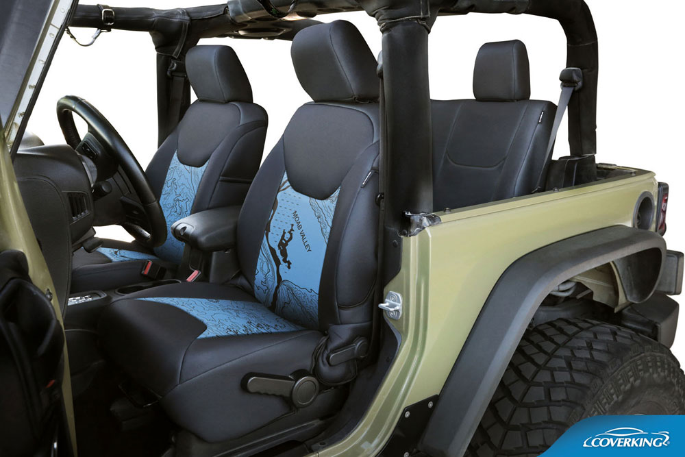 Coverking Custom Black on Blue Neosupreme Seat Cover for Jeep Wrangler (13-17) |