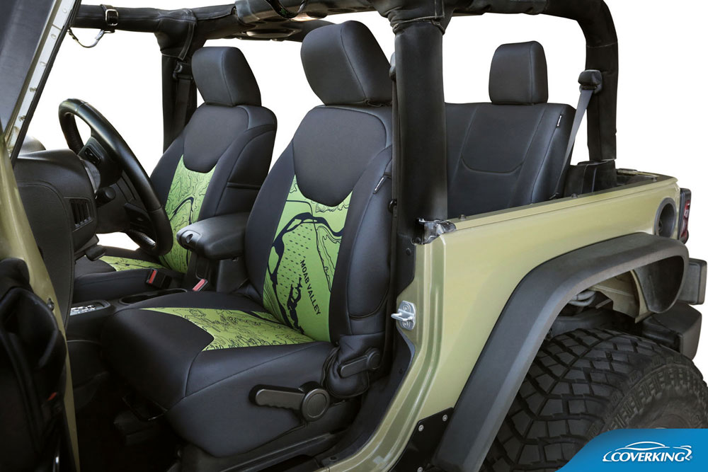 Coverking Custom Black on Green Neosupreme Seat Cover for Jeep Wrangler (13-17) |