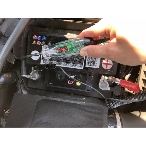 The red clip is to be connected with the positive (+) polarity, and the black clip is connected with the negative (-) polarity. The LED will display “00.0” when nothing is connected with the testing probe