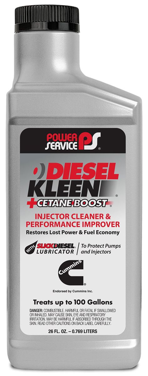 Power Service® Diesel Kleen® +Cetane Boost® is the premier “performance” product on the market. Power Service® Diesel Kleen® +Cetane Boost® is loaded with cetane, detergency and lubricity additives to keep your diesel engine running at peak performance.