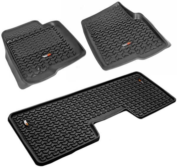 This is not your typical floor liner! Existing floor liners in the market today are constructed of extruded plastic materials vacuum formed to fit the vehicle. Rugged Ridge has taken a completely different approach to floor protection. Each All Terrain Floor Liner is injection molded for superior fit and quality. The injection molded process, though more expensive to develop, allows us to create a floor liner that has exacting measurements or better fit and finish along with a deeply formed perimeter wall for maximum coverage. Each All Terrain Floor Liner has chevrons that are up to 3/8” deep. That is up to 3 times the depth of other floor liners! The chevrons keep water from sloshing and help divert mud water and snow away from the driver's pant leg. We call this true “Deep Tread Technology”!