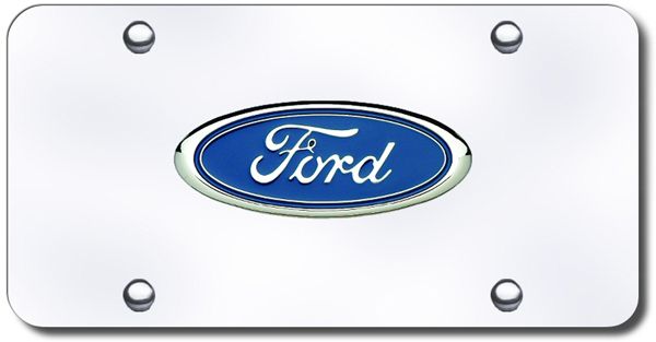 The Ford Logo License Plate is adorned with a 3 Dimensional chrome, colored, Ford logo, mounted on a polished stainless steel plate with an eye-catching mirrored finish. Each plate comes with vehicle specific hardware, matching screw caps to conceal unsightly hardware and a lifetime warranty against flaws in materials and workmanship. Made in the USA