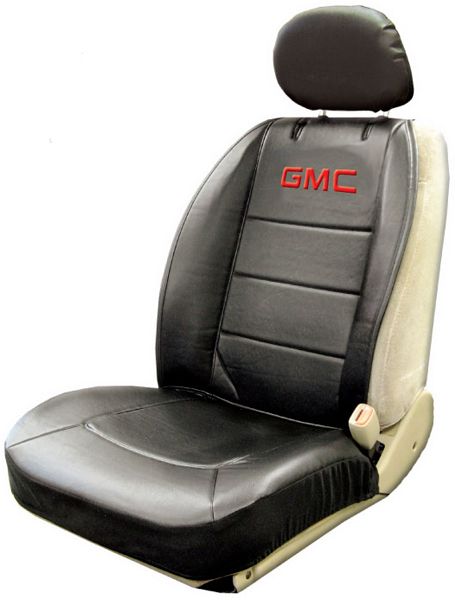 The GMC Sideless Seat Cover with a head rest cover, universally fits most bucket seats with a detachable head rest. The cover does not cover the sides of your vehicles front seats, allowing for the side airbags to deploy in case of an emergency. Constructed of durable, vinyl with a detailed GMC logo embroidered onto the front. Comes with a cargo pocket on back for added storage space and convenience. The seat covers are washable using the cold gentle cycle. Sold individually.
