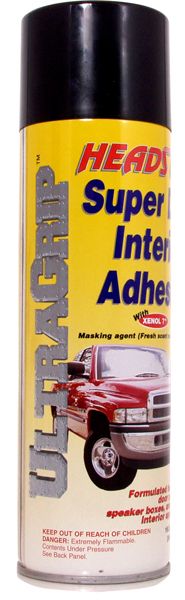 The Heads Up Ultra Grip Super Duty Interior Adhesive is designed to bond with most automotive interior applications that require flexibility such as carpet, side panels, speaker boxes, etc. This all-purpose adhesive features a convenient lace-like spray pattern perfect for most household use, including wood, fabric, most foam, paper and plastic. It is formulated with XENOL-7 to reduce chemical odors and leave a fresh scent.
