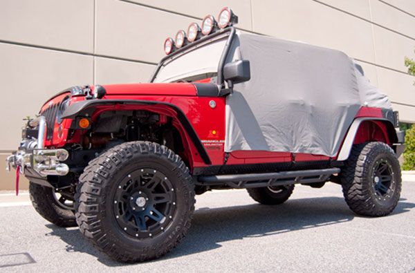The Jeep Wrangler Jk custom fit Cab Cover will protect your Jeep Wrangler's interior from dust, dirt and light showers. Constructed of vinyl coated polyester fabric, these easy to install covers install in minutes. Reinforced elastic side straps and under body hooks hold the cab cover in place. No drilling is required.