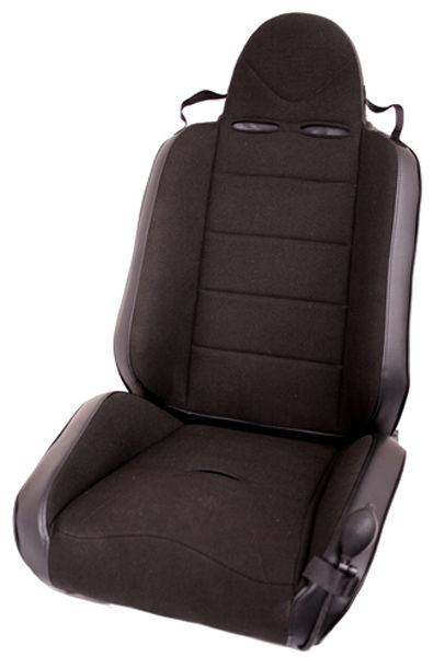 Each Jeep Wrangler Replacement Reclining Race Seat features dual reclining mechanisms allowing for infinite reclining positions. The seat uses ultra dense foam and a steel construction for greater comfort and long life. Side bolsters have been slightly expanded and designed specifically for both lifted and non-lifted Jeep's. A special adjustable ball pump provides lumbar support giving you the ultimate back support in a racing seat design. Woven fabric and vinyl construction gives you the ultimate in comfort and wearability. Each seat has three seat belt harness cutouts for use with a multi-point racing harness seatbelt.
