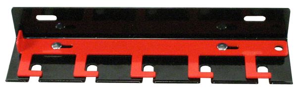 Organize your air tools with this lockable tool holder. It can hold up to five pneumatic tools in a 10" space. Comes with five slots that fit all popular quick connect fittings from Milton, Lincoln, Amflo and others. Can be mounted on a tool box, cart or wall for easy access. Locking feature protects your air tools from theft (provide your own lock). Durable powder-coated finish.