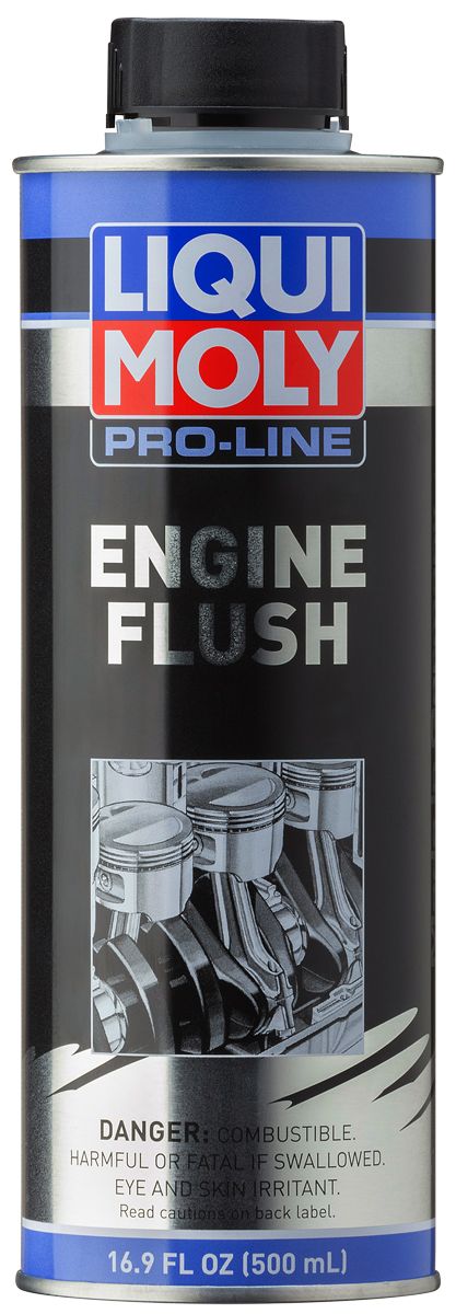Pro-Line Engine Flush is a development product based on highly effective state-of-the-art additive technology. These highly effective detergent and dispersant additives in association with the carrier fluid have been tested in the laboratory and in practical field trials for their ability to dissolve sludge and lacquer formers. All types of oil-soluble and oil-insoluble residues are brought into suspension and removed during the next oil change. An engine which has been cleaned of deposits and contamination and which is then filled with fresh oil not contaminated with old impurities can develop its full performance characteristics.