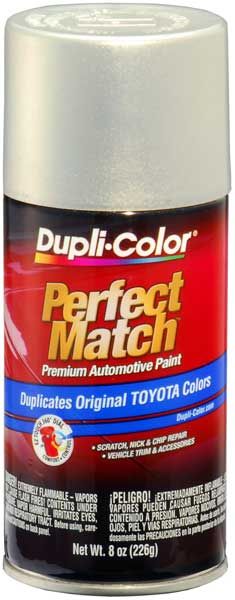 Dupli-Color's Metallic Silver Opal Auto Touch-Up Spray Paint, color code 1C4, is an OEM EXACT-MATCH for the 1999-2002 Toyota vehicles. Dupli-Color's Metallic Auto Touch-Up Paint outperforms the competition and produces a durable, factory-match finish quickly and easily. Do it yourself and avoid the high prices of the professionals, while still achieving professional results! Price is for one 8 oz. spray can.