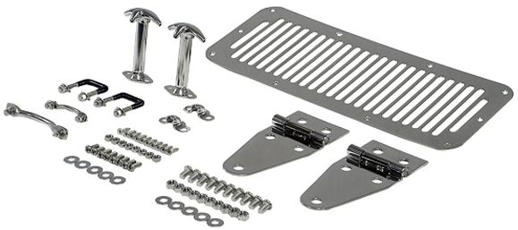 The Jeep CJ, Wrangler and Unlimited complete hood kit is a complete set for the ultimate look. Constructed of prime 304 stainless steel polished to a mirror finish o for the best looking, longest lasting product found on the market today.