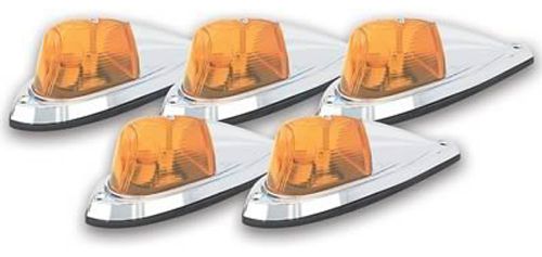 The Deluxe Light Kit includes 5 cab roof running lights. Each amber running light is built with a die cast (not plastic or pressed metal) base which is triple chrome plated for long life. A special curvature on the light's base allows for a snug fit whether mounting on a curved or flat surface. A ¼" sealing pad ensures there is no leakage through the mount holes. Kit includes lights, wire harness, splice connectors, screws, and a dash mount panel with toggle switch plus indicator light. By Pacer.