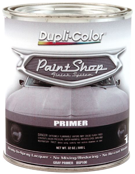 The Dupli-Color Paint Shop Gray Primer is ready to spray (no mixing or reducing is required) and dries fast. With no re-coat window or additional coats of Dupli•Color® Paint Shop Primer, it can be applied at any time. Use with the Dupli-Color Paint Shop Lacquer and Paint Shop Clear Coat and you'll have everything needed to create a professional-looking DIY finish.