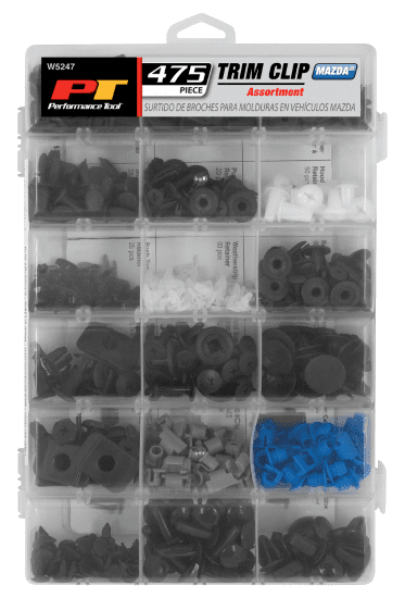 475pc auto body retainer, fastener, and clips assortment for Mazda vehicles