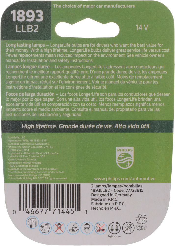 Philips 1893 LongerLife Miniature Bulbs (Pair) |