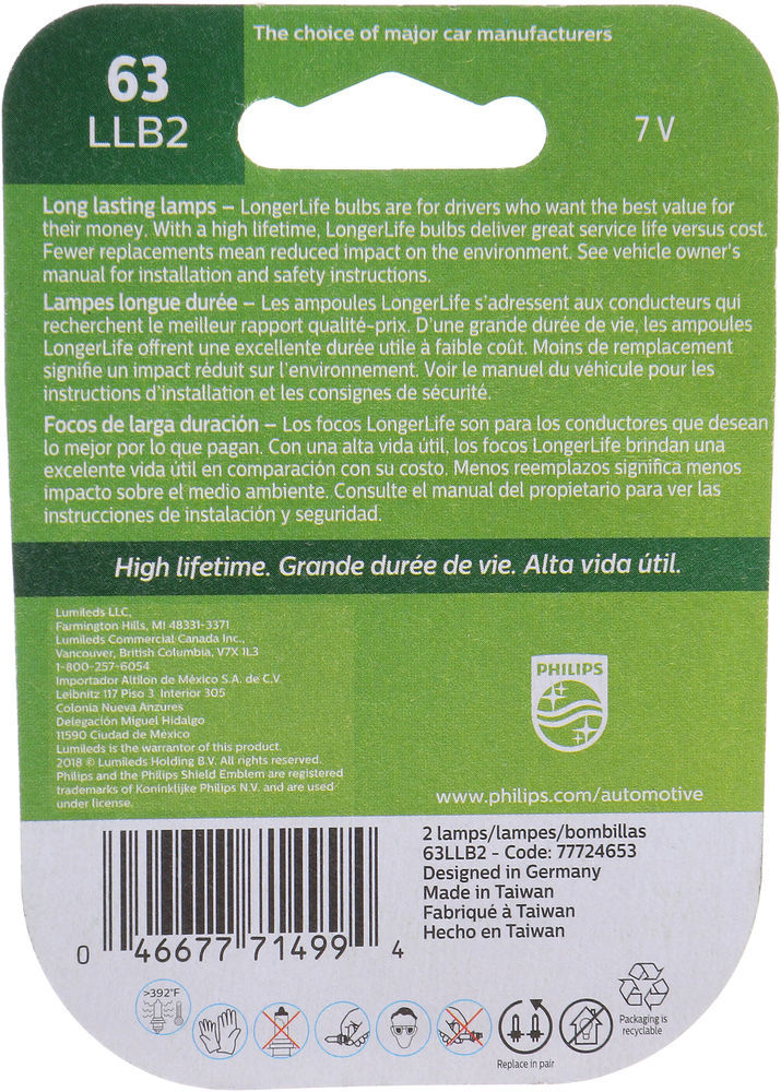 Philips 63 LongerLife Miniature Bulbs (Pair) |