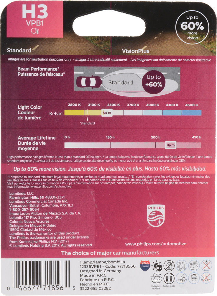 Philips H3 VisionPlus Headlight Bulb |