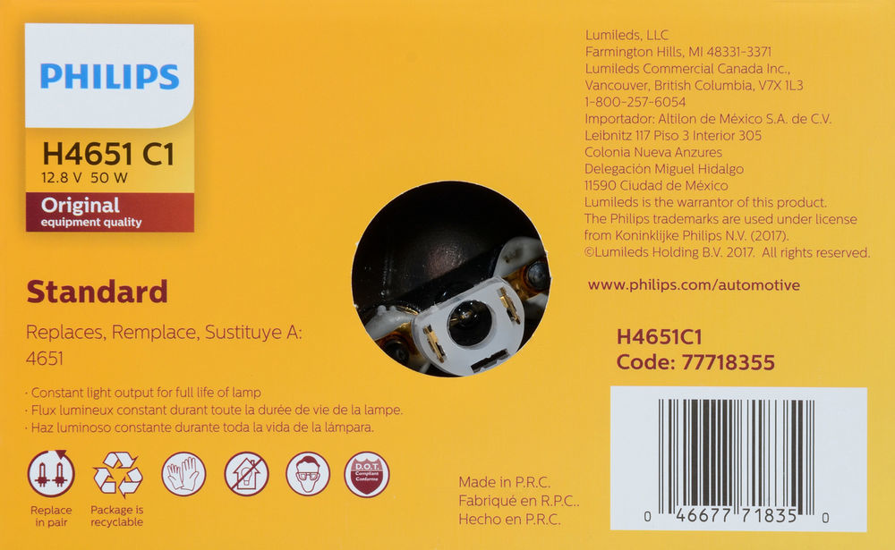 Philips H4651 Standard Halogen Sealed Beam Headlamp |