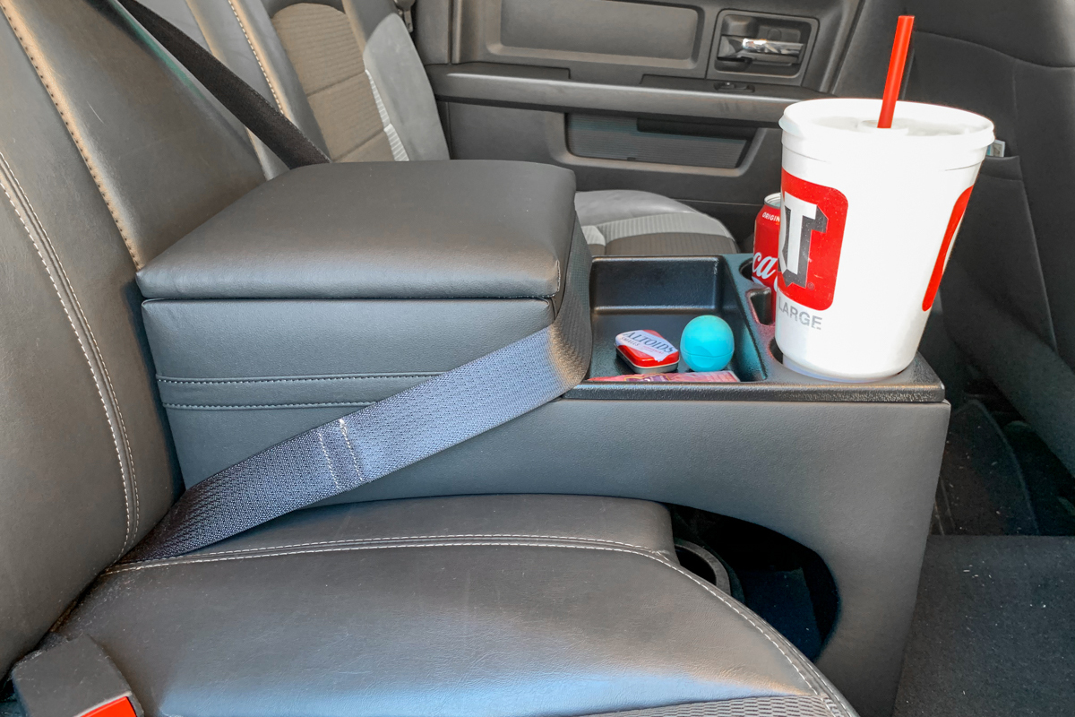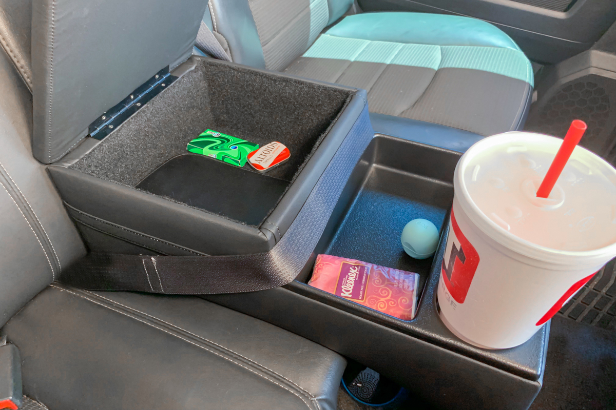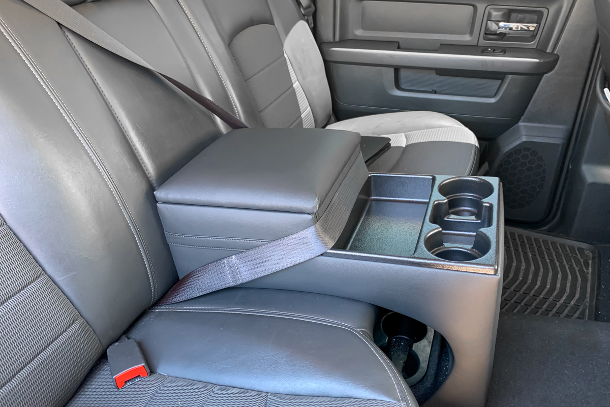 The Ford Pick-up & Suburban Bench Seat Center Console is specifically designed to fit most full size Ford pick-ups and Suburban's with full bench seats up to 1991. Each console is individually made. The wood frame is cut and constructed prior to applying any padding or a full vinyl wrap, giving the console a quality look and feel. Comes with dual drink holders, a padded armrest and a storage compartment. Size: 20ū" (L) x 11" (W) x 18―" (H)