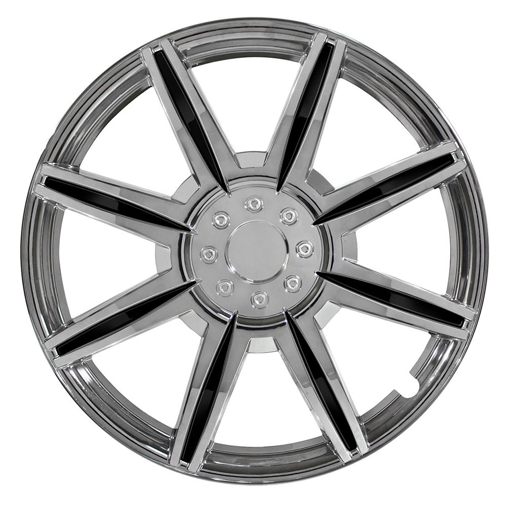 8 Spoke Chrome 16" Wheel Cover with Black Inserts, (Set of 4) |
