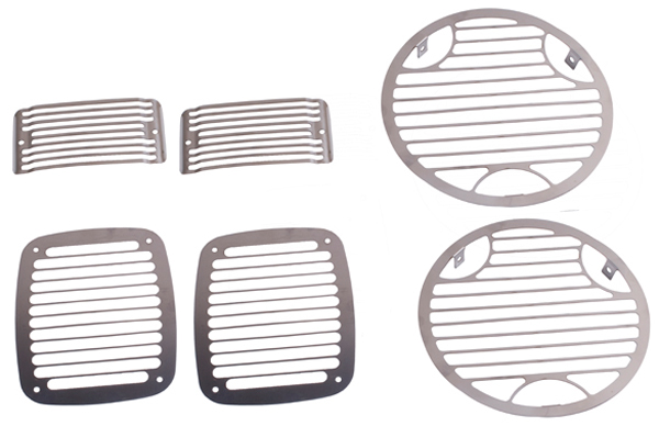 The 6-Piece Stone Guard Set features a durable wire mesh construction, which will protect your Jeep Wrangler's headlights from flying rocks and other road hazards. The stone guards are constructed of stainless steel giving your jeep a contemporary look found nowhere else.