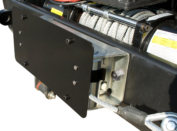 attaches to your winch roller fairlead. Simply bolt your license plate to
