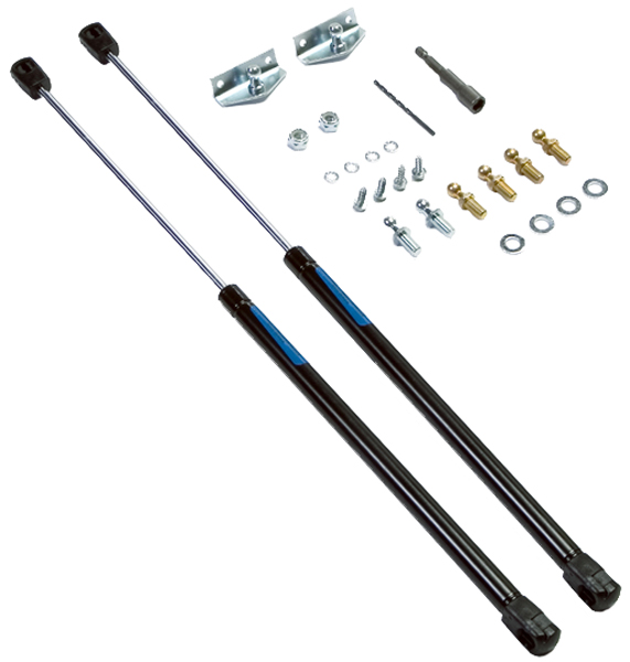 The perfect solution for those hard to handle Jeep hoods. This kit features two gas shocks and all the brackets needed to clean up the under hood appearance of your rig. Once installed, this hood lift will hold open your hood when fully extended. Replaces that cumbersome hood "prop". Double shocks assist in hood opening making it easier and more convenient to work on your Jeep's engine or check your fluids.