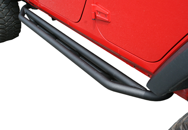 Keep the rocker panels on your Jeep Wrangler JK from being beaten to a pulp on the trail the RRC side armor. Built from heavy-duty 2" x 0.120" black texture powdercoated steel tubing, these guards will take the beating that was meant for your body sheet-metal. Simple bolt-on design utilizes existing body mount locations for a secure, rattle free installation. The black texture finish resists scratches and gives a slip-resistant surface for door entry. Sold as a pair and includes all necessary installation hardware.