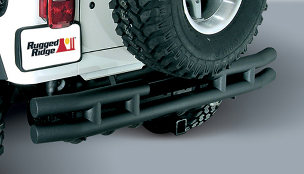 The Jeep Wrangler & Unlimited Rear Tube Bumper features a smooth ground weld for an unbelievable look and further rust protection. This exclusive smooth grind process virtually eliminates small weld "pockets" that never seem to get full paint coverage and tend to rust over time. Plus, the rear bumper features welded end caps rather than plastic end caps, which takes away from having to replace those lost tube bumper end caps after a long day on the trail. It has a larger 17" rear opening allowing the use of oversized tires (up to 31") on the factory spare tire mount. It also features an frame mounted hitch that allows for lightweight towing (2,000lb towing weight, 200lb tongue weight capacity).