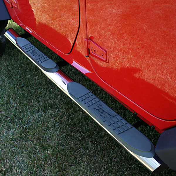 The Stainless Steel Tube steps for the Jeep Wrangler JK are custom designed for the oversized features of Jeep Wrangler JK. Unlike smaller tube designs, these large round tubes provide a much cleaner look and are not "dwarfed" by oversized tires and body style. The stainless steel tube steps feature prime 304L, �" wall stainless tubing polished to a mirror finish. The polishing process for the step is longer and deeper pulling out the deepest shine from the steel. Each tube step features a no-drill installation for ease of installation and a truly custom fit. All tube step installation brackets are constructed of durable 3/16" powdercoated steel for long life and years of flex-free use. Each Tube Step features special UV treated no-slip step pads with 5 mounting pins. These step pads are installed on top of the tube - no exposed metal to rust. Sold as a pair.