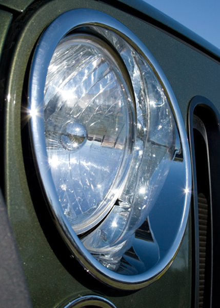 Complete the look of your Jeep Wrangler JK with these chrome headlight trim from Rugged Ridge. These UV-treated chrome plated plastic accents attach to your vehicle with durable double sided tape; the same tape used in attaching complete body kits to vehicles. Sold as a pair.